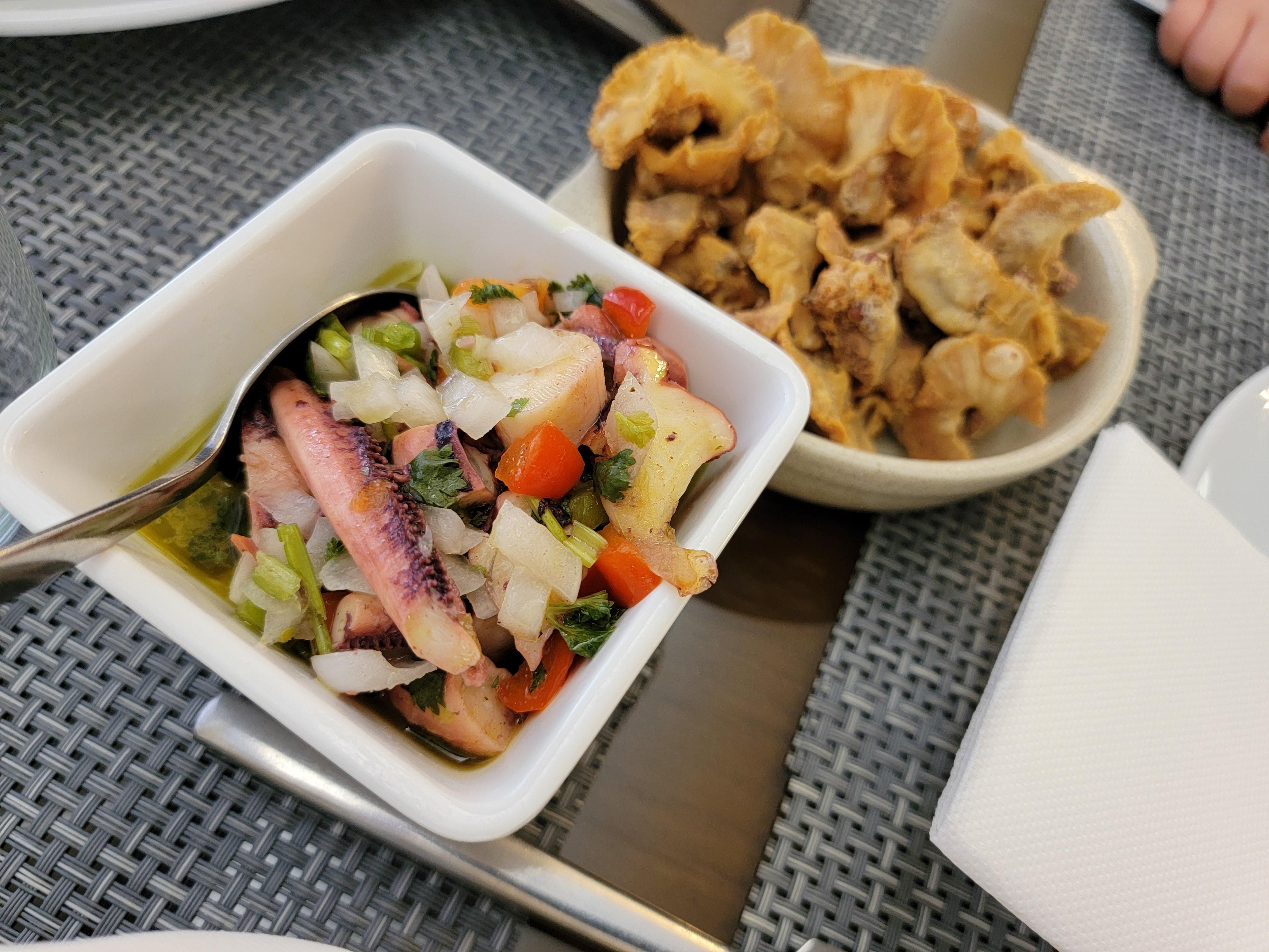テーブルの上が一気に豪華になりました。ポルトガルの伝統料理のトップバッターがズラリと並ぶ、なかなかのポルトガルテーブル。
