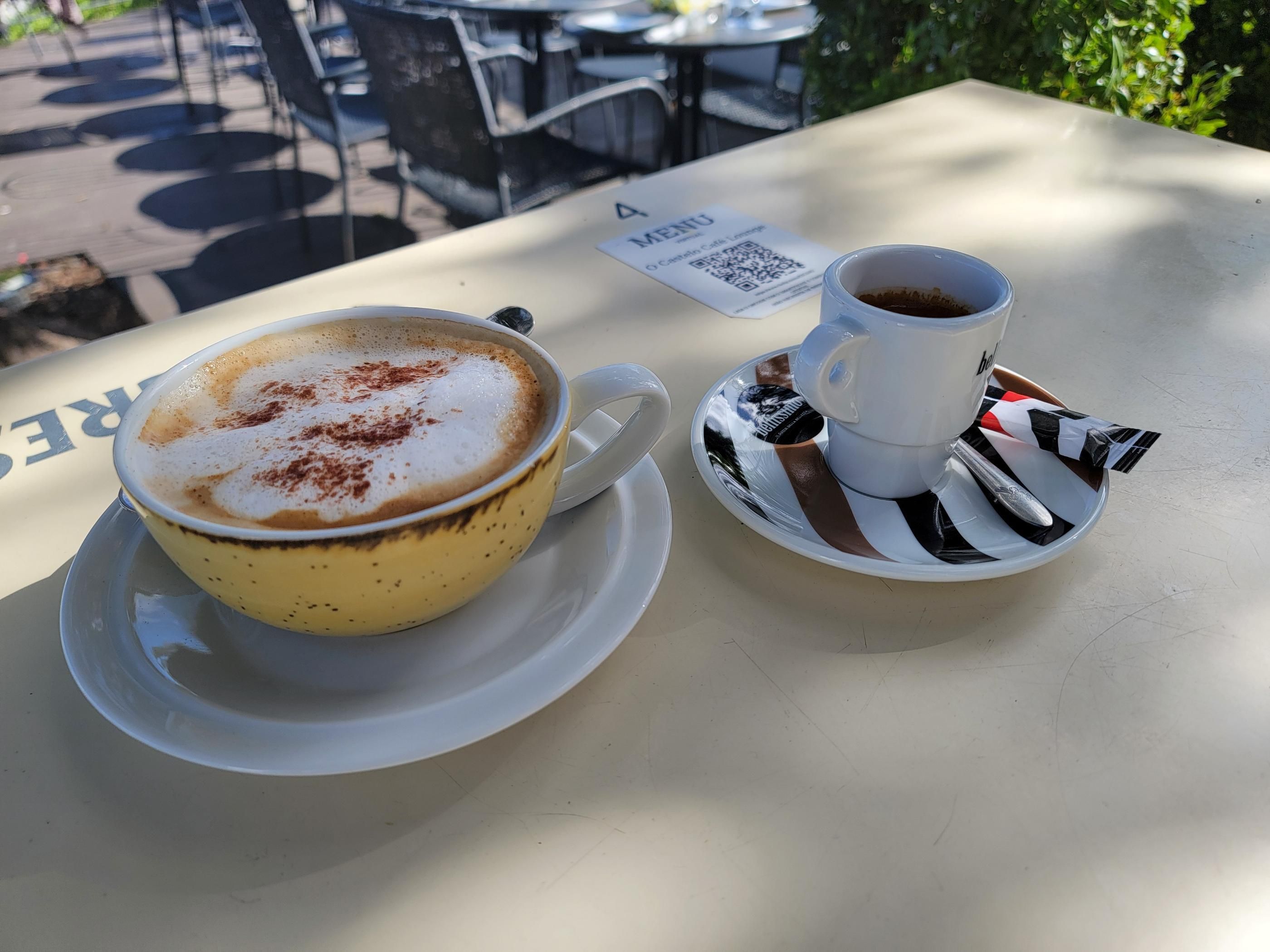 大雨の中、雲の上で楽しんだ気分になった後、晴れ間の中で味わったカフェタイム。